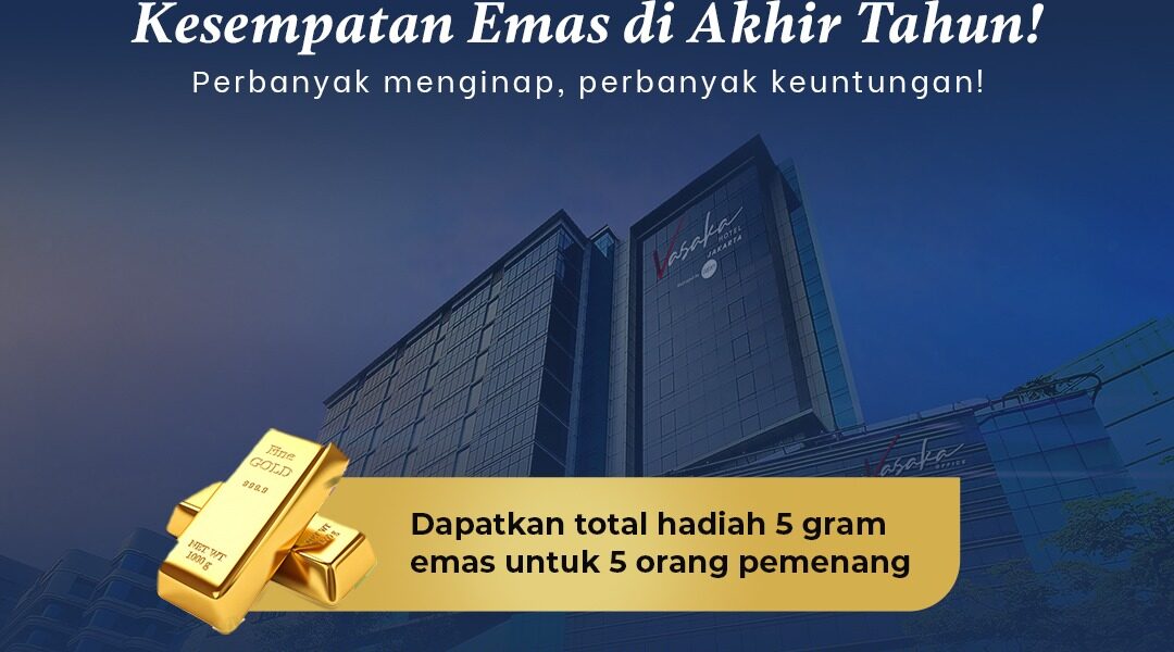 Promo ini dikemas untuk memberikan sensasi yang berbeda pagi para pelanggan setia Vasaka Hotel Jakarta, dimana dengan semakin sering menginap di Vasaka Hotel Jakarta, para tamu akan mendapatkan value yang lebih pula dari hanya sekadar menginap di hotel, namun ada added value dan reward yang sedang menunggu diakhir tahun yaitu berupa logam mulia. Para pemenang kesempatan emas ini akan diumumkan saat perayaan pergantian malam Tahun Baru 2025.