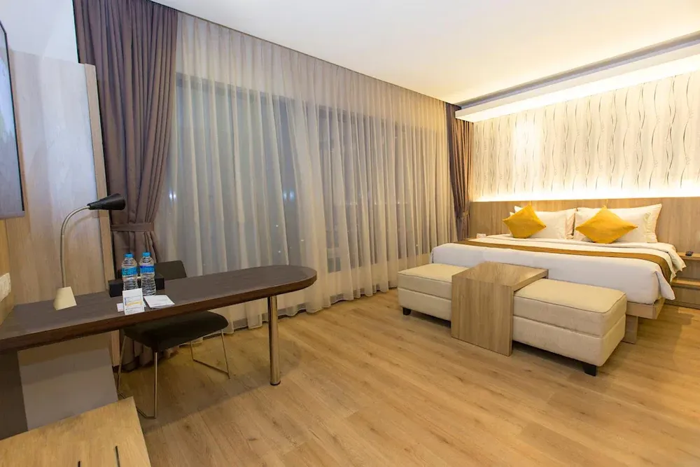 - Konsep: Hotel dengan akomodasi modern dengan akses Wi-Fi gratis di seluruh areanya